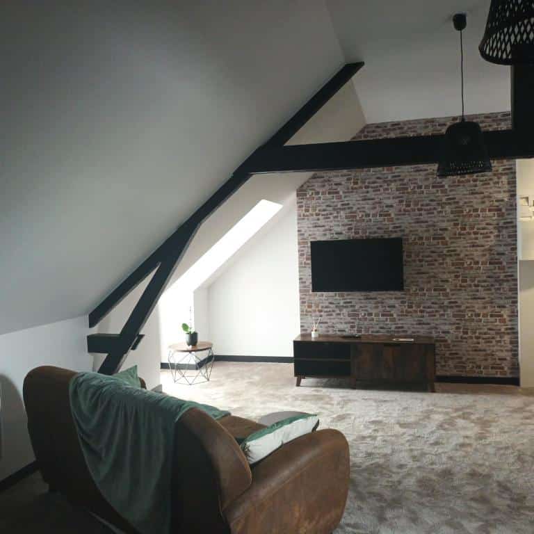 La salle de bains privative, équipée d’une douche, apporte un vrai confort supplémentaire. L’appartement dispose également d’un coin repas et d’une télévision à écran plat.